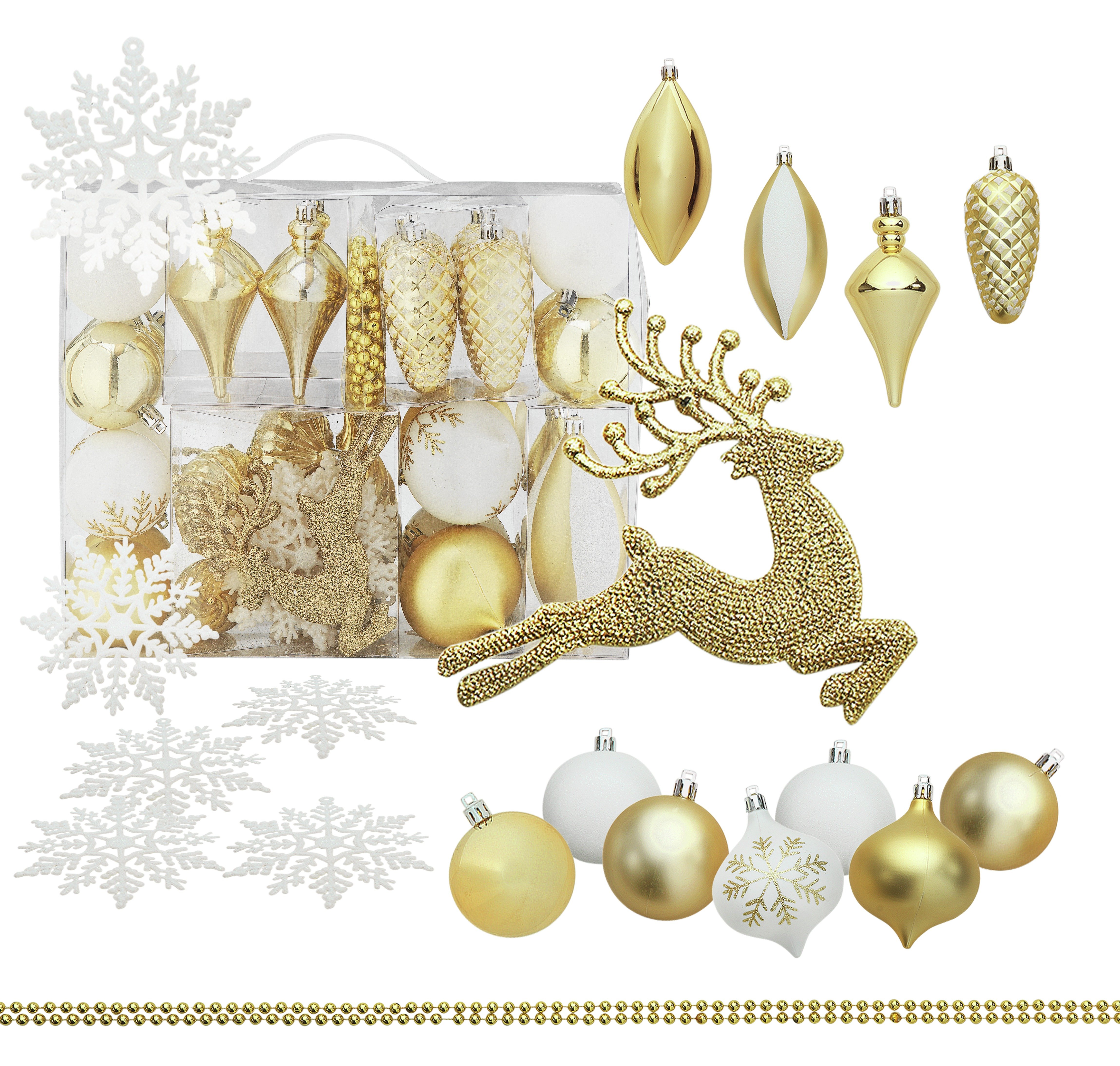 This white and gold bauble set has a lovely festive feel. Packed with 48 pieces, it offers brilliant value for money